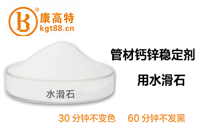 管材钙锌稳定剂专用水滑石是康高特公司根据PVC管材的特点而研发的水滑石,PVC管材的特点是:白度要好,韧性高,强度牢,环刚度数值大,维卡温度高。