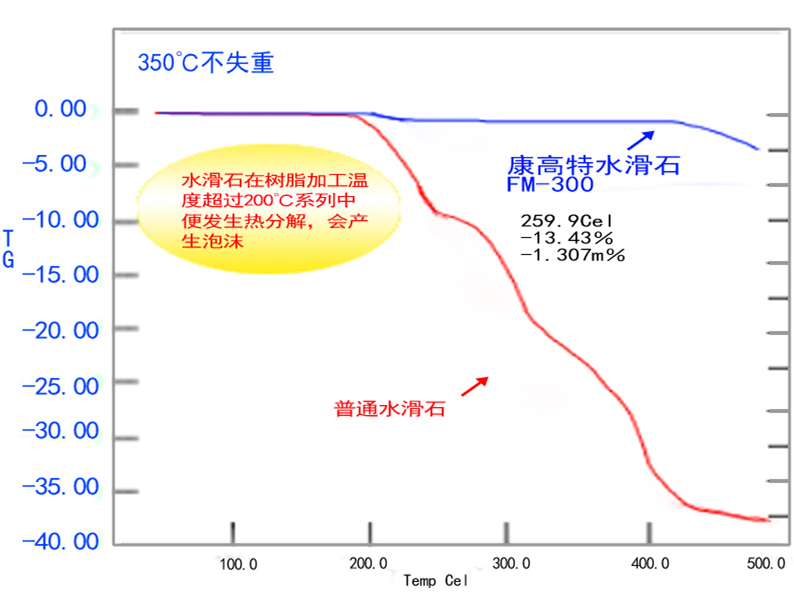 康高特水滑石作为热稳定剂使用具有以下特点: