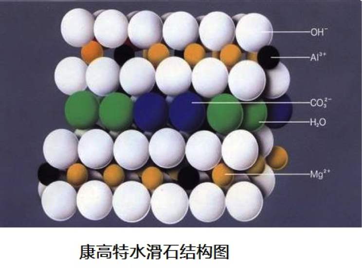 康高特水滑石的分子式: [Mg4Al2(OH)16CO3]·4H2O (相对分子质量为602) 镁铝摩尔比为3:1