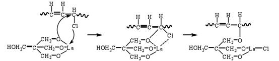 季戊四醇镧不仅可以改善PVC初期颜色,而且可以延长PVC热稳定时间,同样季戊四醇镧与PVC的反应有两种机理: