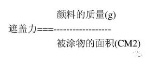 遮盖力的表示方法是指每平方厘米被涂物的表面积,在达到完全遮盖时,需用涂料的最低用量。即:
