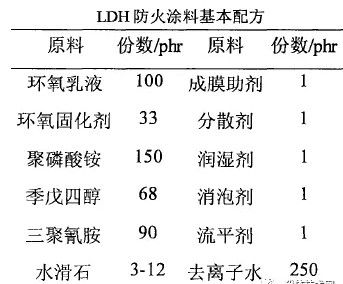 水滑石(LDH)是一种带正电荷的金属氧化物层和带负电的阴离子构成的纳米层状材料,以水滑石为添加型防火填料制备的防火涂料,具有良好的阻燃性能。