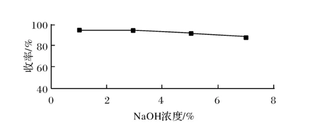 图 1 氢氧化钠浓度对硬脂酸铁收率影响
