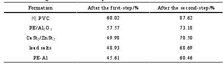 最大吸收波长的大小表示共轭链的长度,最大吸收波长越大说明PVC共轭链越长,即热稳定剂热稳定效果越差;